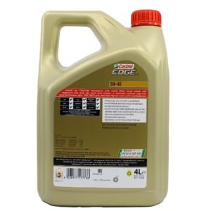 Castrol EDGE 5W40, Sıvı TİTANYUM Teknolojisi ile motor basıncı altında dayanıklılığı artırır. Metal sürtünmesini azaltarak motor performansını en üst düzeye çıkarır. Hem benzinli hem de dizel araçlarda kullanım için uygundur.