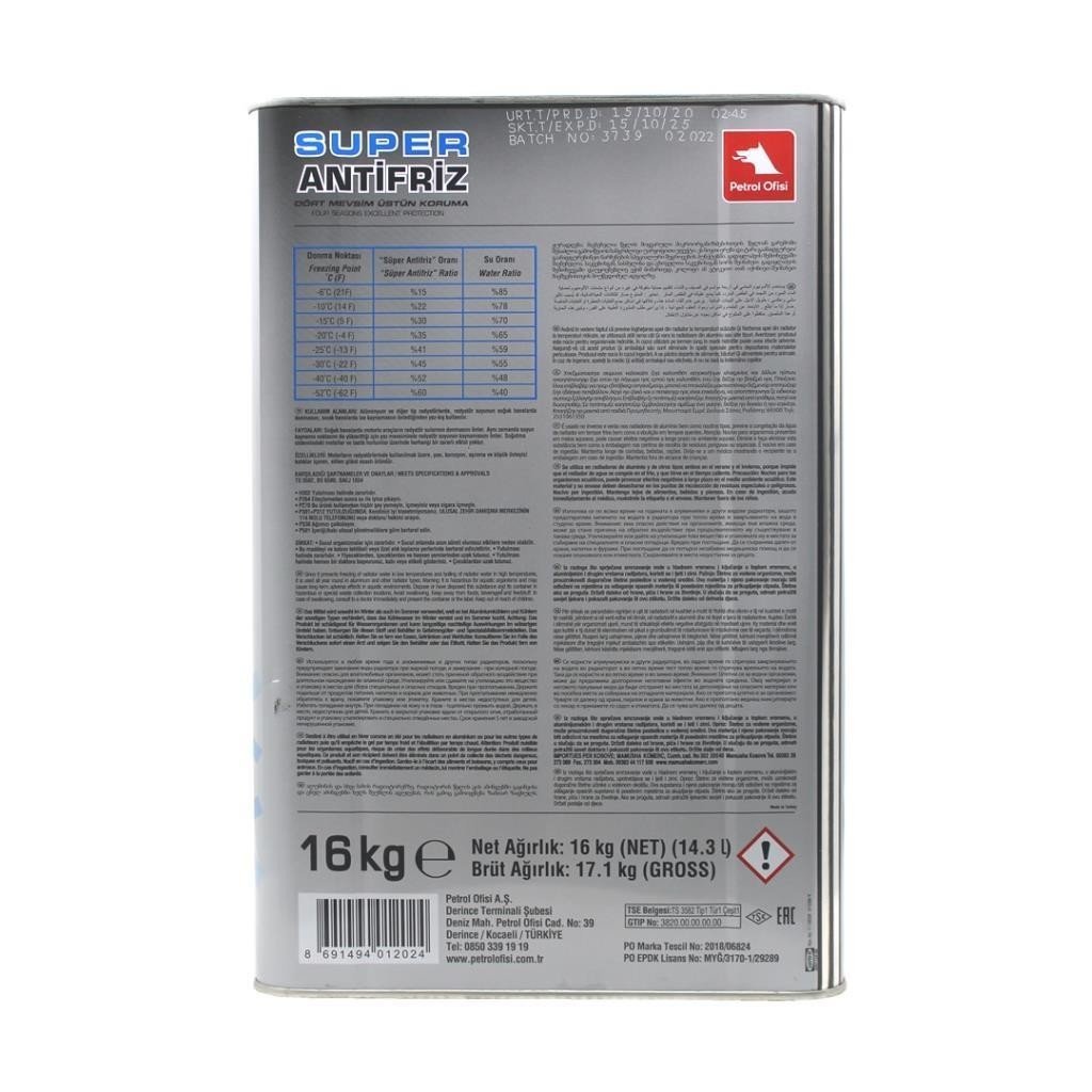 Petrol Ofisi Süper Antifriz 16 Kg Yeşil Antifiriz